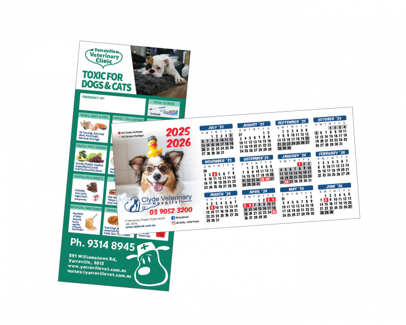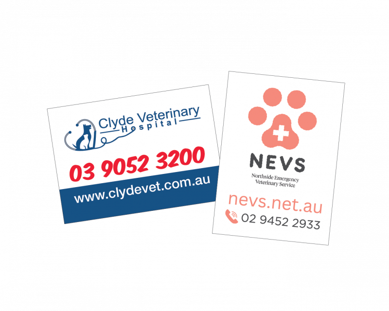 Designed to keep your clinic top-of-mind, these powerful marketing tools are more than just decorative. They’re a daily reminder of your clinic’s services, reliability, and care. Whether placed on a fridge, filing cabinet, or office board, vets fridge magnets work day and night to ensure your clients never forget who to call when their furry, feathered, or scaly friends need care.