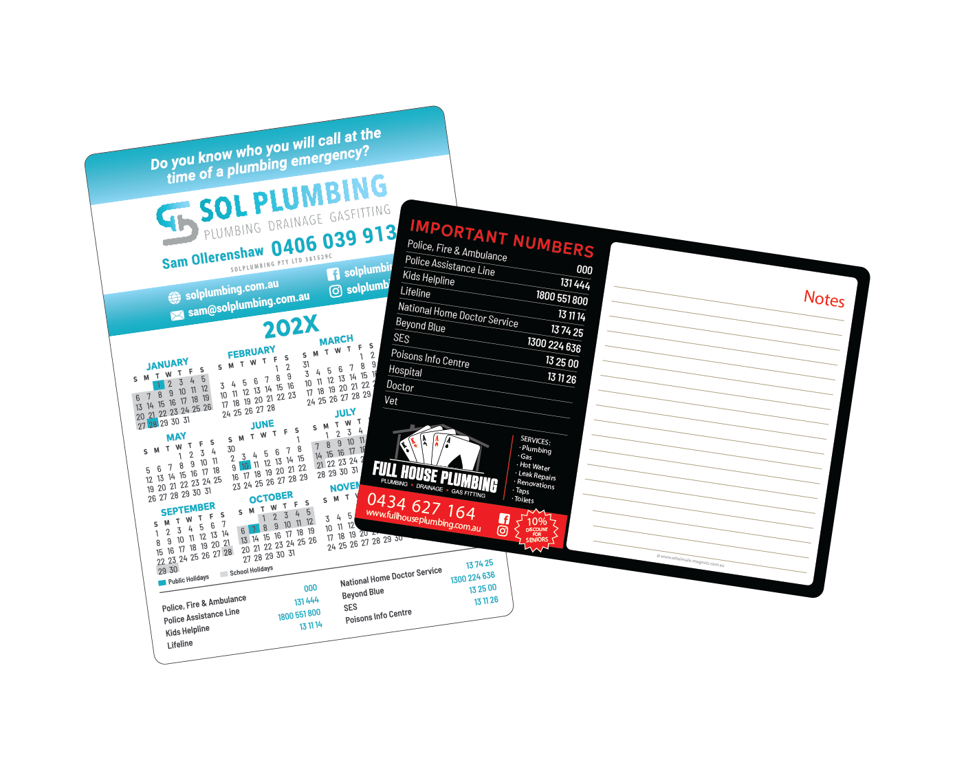 Want to highlight your emergency call-out service? Showcase your service areas? Keep it bold and simple or add a team photo? We can do all of that—and more. Whether you’re a solo plumber or running a multi-van operation, we’ll build a magnet that matches your style and audience.
