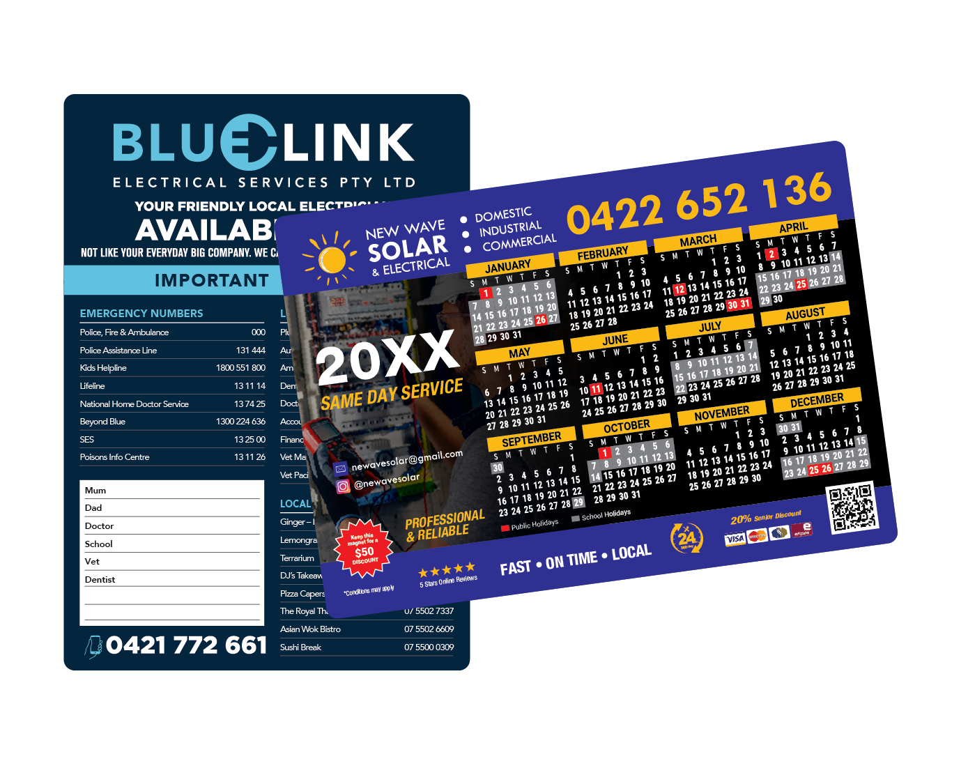 They just sit quietly on the fridge, doing the one job you need them to do: keeping your business top-of-mind when customers need an electrician they can trust.