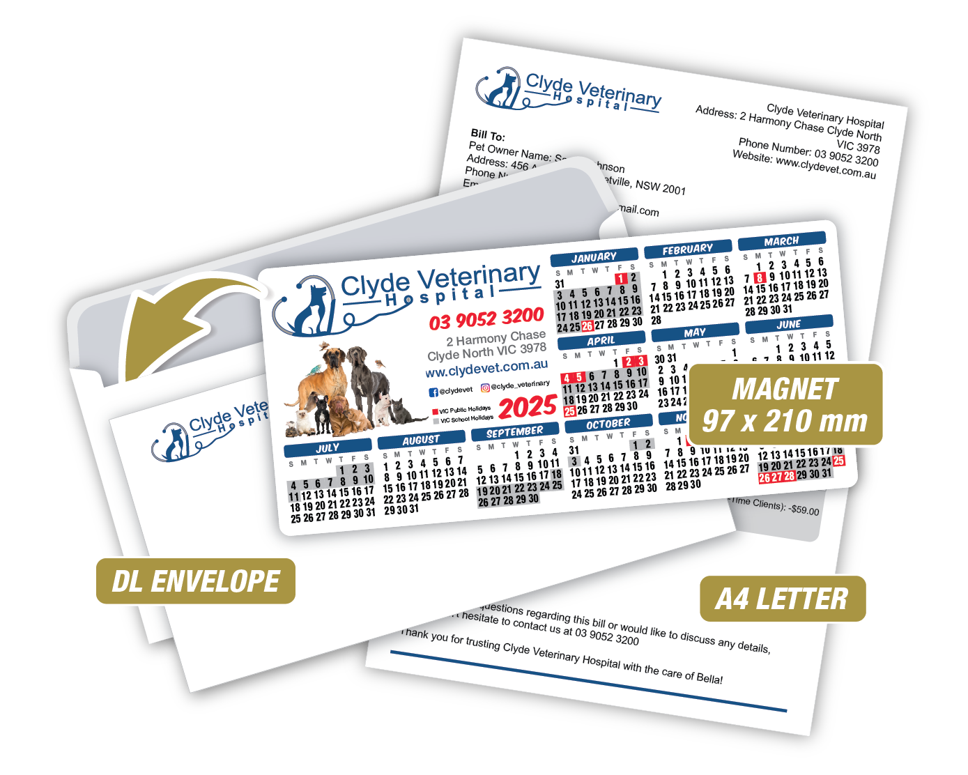 Our easy ordering process, free artwork design, and fast delivery make it simple to get started. Whether you’re just beginning your clinic’s journey or are already a well-established practice, fridge magnets are the ideal marketing solution for veterinary professionals who want results.