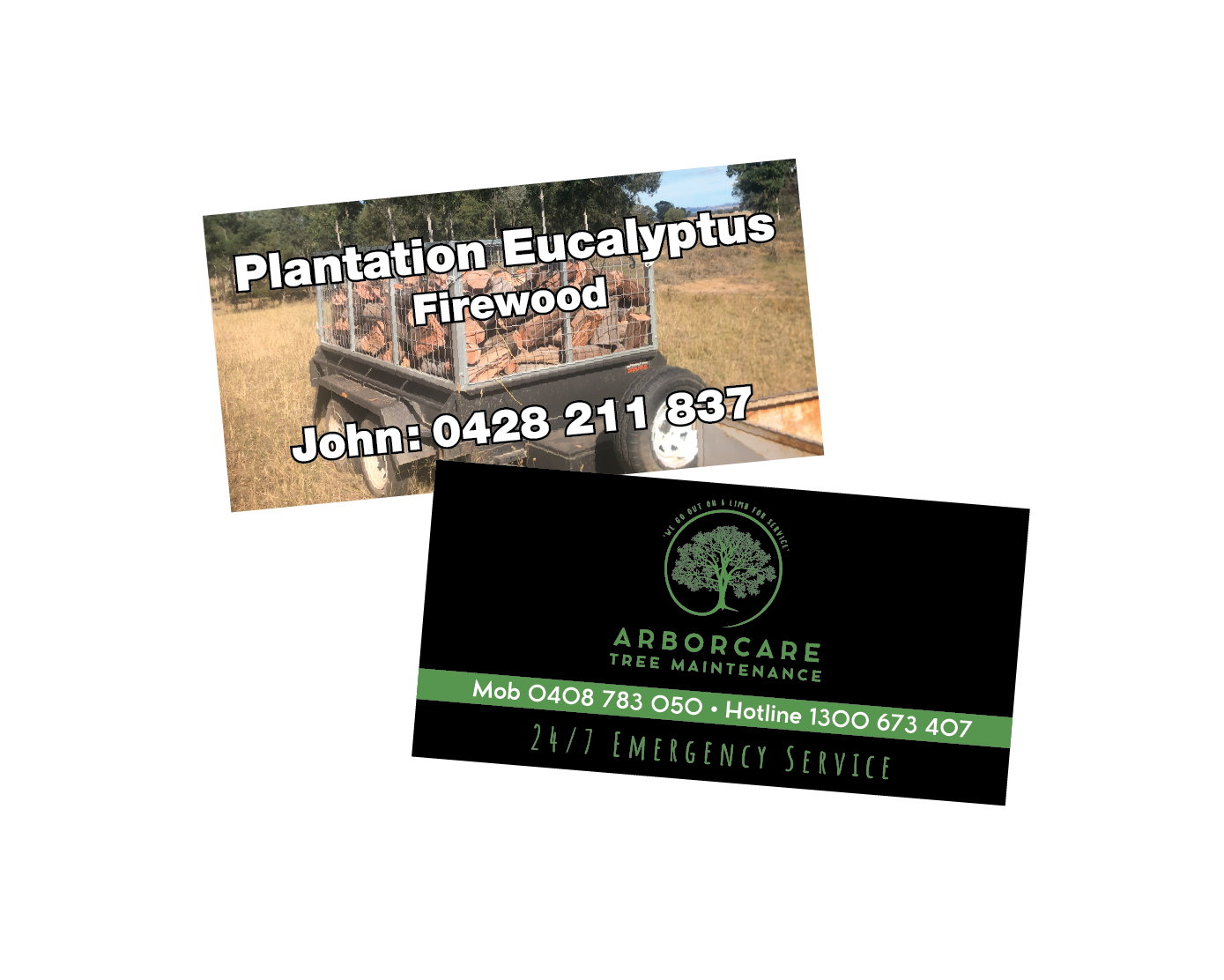 The beauty of fridge magnets for tree services & firewood suppliers is how much value they deliver for such a low cost. They’re easy to hand out after a job, include with invoices, drop in mailboxes, or leave at local supply shops and service counters.