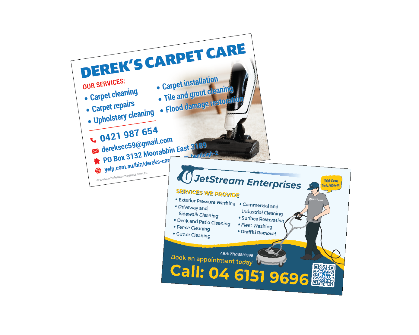 Not all promotional magnets are created equal. Our carpet cleaners fridge magnets are engineered using premium, commercial-grade magnetic sheeting that’s thicker and stronger than standard options. We back each magnet with a high-density board that surpasses the thickness offered by most printers, creating a product that feels substantial in the customer’s hand.